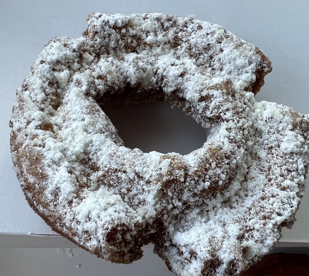 Savory beef patty between choice of sweet donuts, including glazed, coconut, maple bacon, or cinnamon sugar cronuts, with unique donut options.